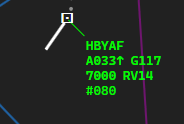 By default it is displayed at the bottom row of the Data Block when the Command-Line Interface is enabled. It is prefixed by a # (not for Normal Symbol Style 3). This behaviour can be toggled in Options > Digital Radar > Show Comp. ID for all.